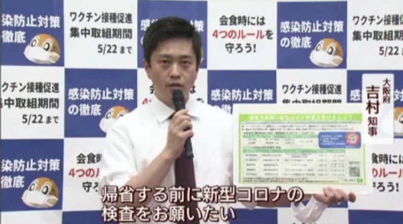 大阪府 連休中の検査に一人当たり2万円の協力金