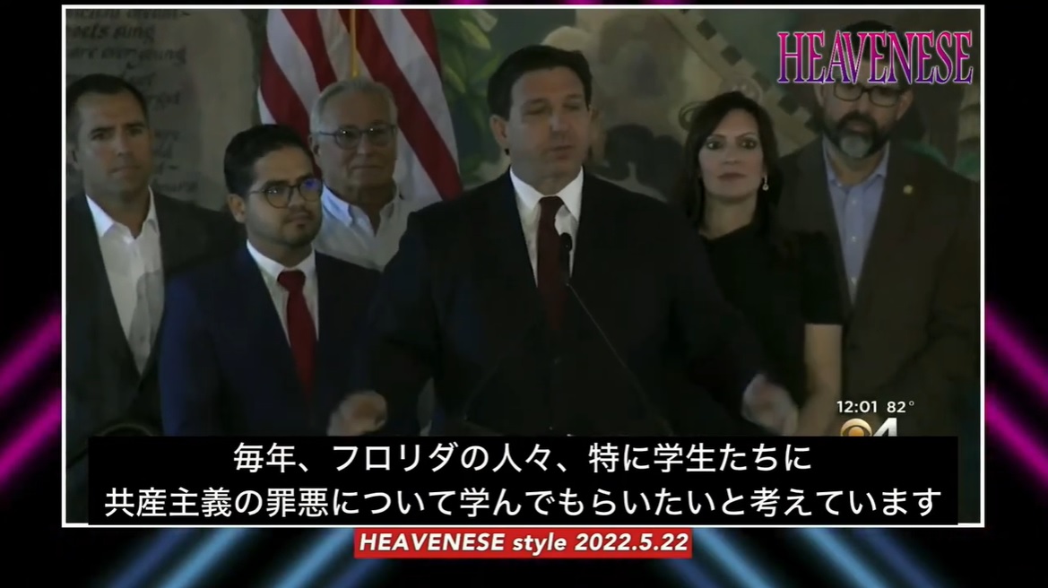 知事は「HB395法案」に署名したことについて語りました。フロリダ州では11月7日を「共産主義の犠牲者を追悼する日」に定めるものです。「HB395法案」は、全ての高校生に、共産主義について学ぶことを義務付け、特にヨシフ・スターリン、フィデル・カストロ、共産主義政権の下で行われた残虐行為について学ぶことになります。現在、デサンティス知事は、新たにフロリダ州教育委員に任命されたマニー・ディアスを含む、他の数名の指導者と共に演説し、この法律は次の世代に歴史を伝える為に必要だと述べました。